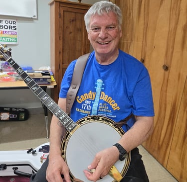 Yes, I really do play the five string banjo. Upside down and backwards. Yup- I play right handed instruments with my left hand. Don't ask. You could say I need therapy. I'll tell you that story when I get to writing about my journey.