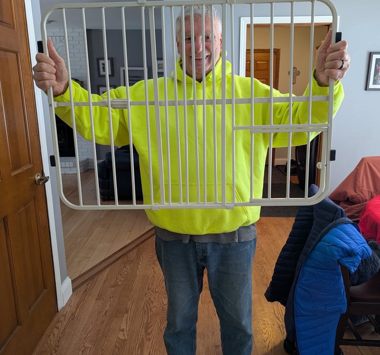 Why am I smiling? My pooper is finally free of his dog gate. You will meet Kizer the kindly dog in the people and four legged fir friends section.